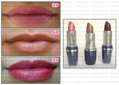 A Felicittá Looks me enviou 3 batons em cores diferentes: natural acobreado (nº46), vermelho vinho (nº23) e rosa pink (nº29). Todos eles tem acabamento com cintilância.