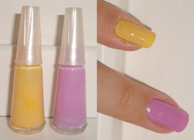 O lilás eu fiz com a misturinha do Paris (Risque) e um pouco (bem pouco) do Noite Quente (Colorama). É legal você sempre pingar solvente de esmalte nas misturinhas para elas ficarem bem homogêneas.