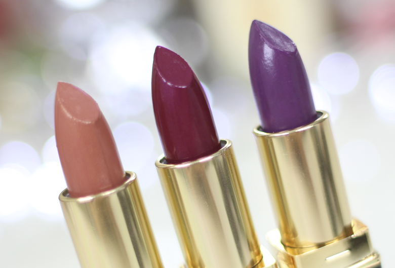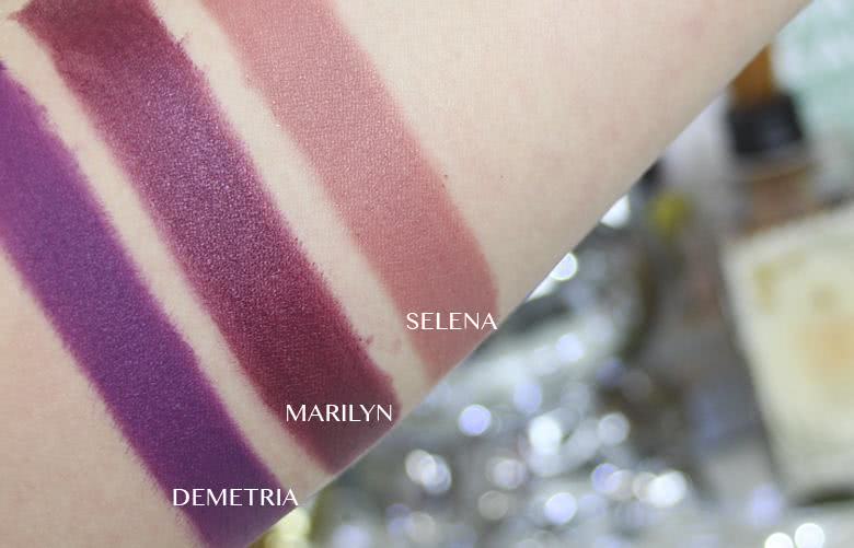 Por fim, o 403 Noite Afora é o único roxinho que eu usei mas ele é diferente. Apesar de ser um tom roxo escuro, ele é levemente cintilante e tem uma cobertura um pouco mais leve. Nos lábios ele acaba ficando clarinho e bem discreto. Se você tem medo de usar roxo, esse pode ser ótimo para começar porque você consegue dosar a quantidade aplicada.