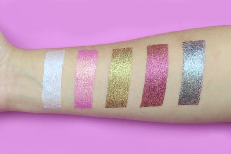 Começando pelo Santorini, um iluminador branco, com efeito furta cor! Nos lábios achei que ficou ousado demais, mas achei incrível para usar como iluminador! O efeito furta cor dá um iluminado lindo no rosto! Mais lindo ainda pessoalmente!