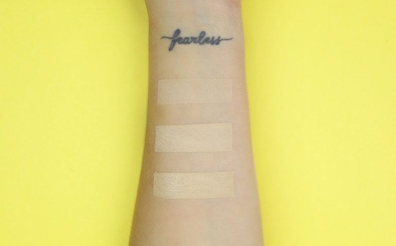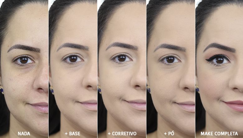 Na ordem: pó, corretivo e base, todos cor 03.