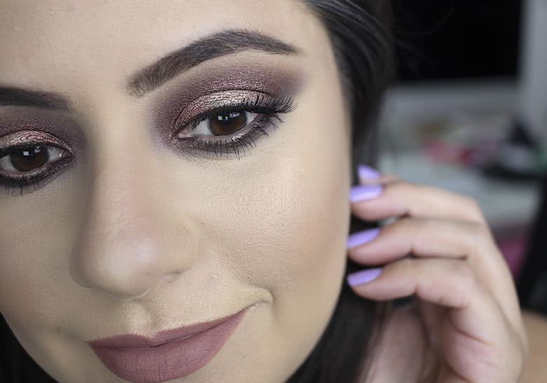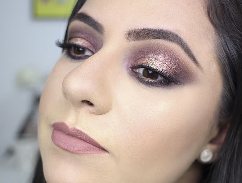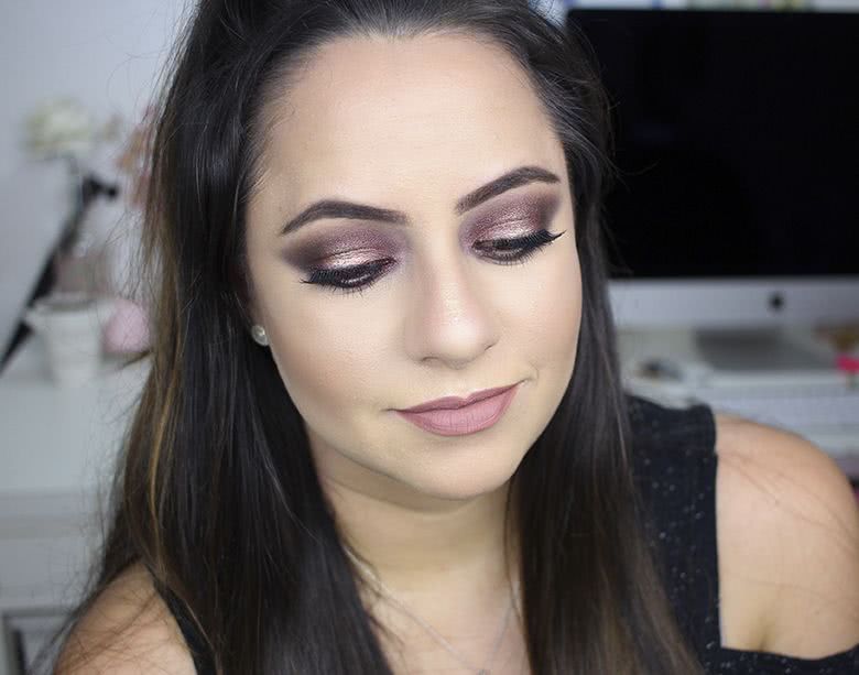 Fiz uma maquiagem super dramática seguindo a tendência pálpebra luz, com o meio da pálpebra móvel mais iluminado dando sensação de profundidade. Eu amei demais o resultado! E olha, o brilho dessas sombras são lindos! Vou querer uma paleta dessa pra mim com certeza!