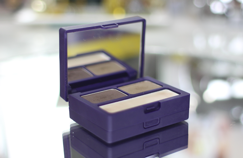No primeiro andar ele tem um espelho da tampa e dois tons de sombra para preencher as sobrancelhas. Eu gosto de usar a mais clara no começo da sobrancelha e a mais escura no final e nas falhas.