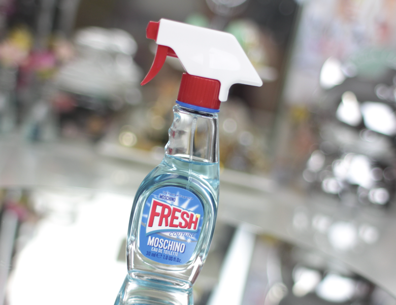 O único perfume que eu comprei na minha última viagem (veja aqui meu vídeo de comprinhas de beleza) foi o lançamento Fresh Couture da Moschino. Eu fiquei doida nele desde que vi a primeira foto. Gente, parece um produto de limpeza! Achei o máximo essa embalagem super diferente. Quando fui sentir o cheiro, me apaixonei, é bem refrescante e suave.