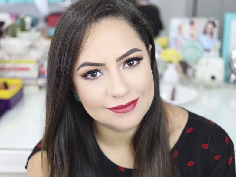 O Rosângela foi criado em homenagem à mãe da Bru! Ela sempre usou vermelho, desde quando a cor não era tão comum assim e a Bru criou um batom incrível para presentea-la! A Bru descreve como um vermelho bem vivo, com brilhos douradinhos discretos, mas em mim puxou mais para um framboesa! Lindo!