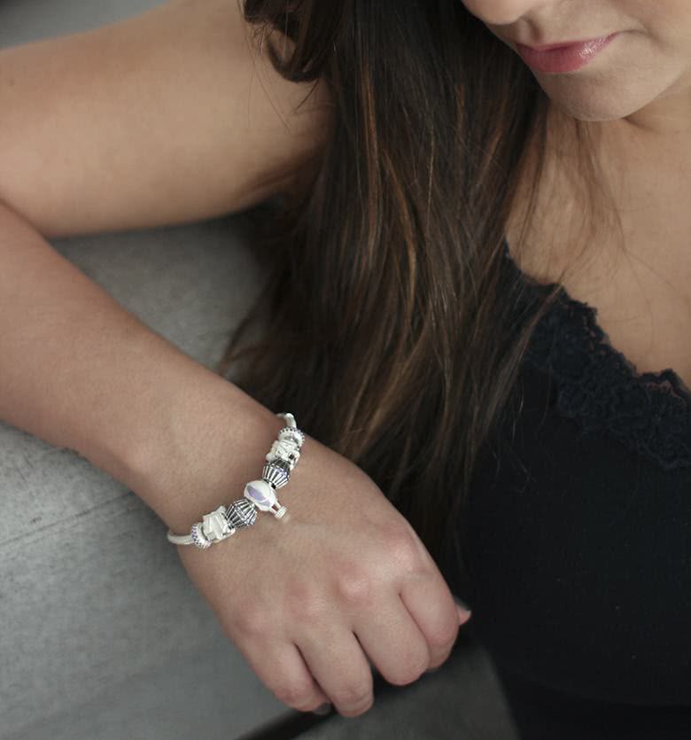 Todas as peças da Lohara são feitas em prata 925 e são compatíveis com todas as pulseiras do mercado. São diversas opções de berloques diferentes e também tem duas opções de pulseira, a rígida e a maleável. A minha é a maleável no tamanho 19cm.