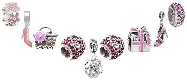 Essa também é uma das que eu mais gostei porque escolhi como tema a cor rosa. Selecionei os berloques desse tom e que combinavam entre si. No final, ficou uma pulseira super delicada com o tema florido e cor de rosa.