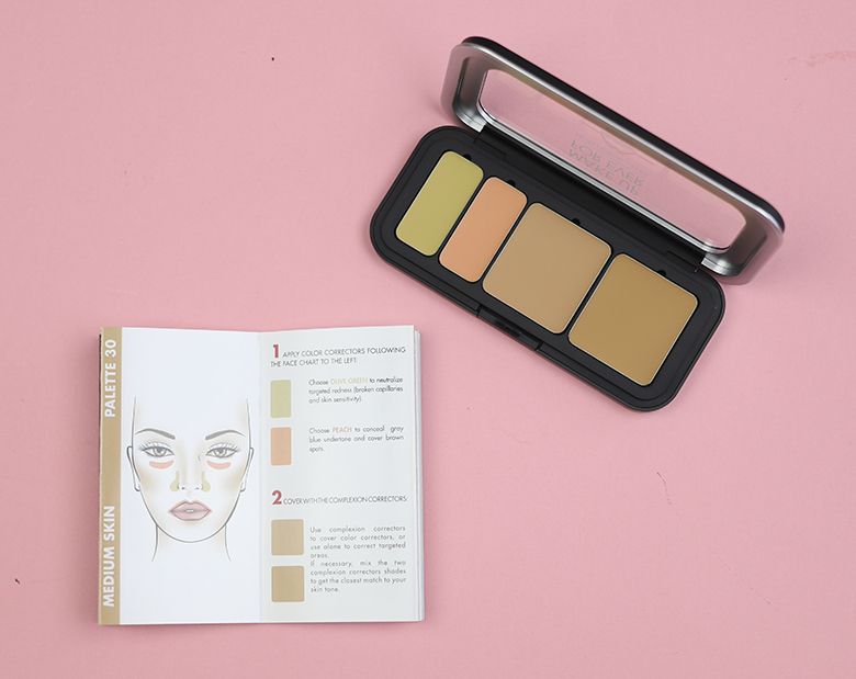 Paleta de corretivos com duas cores de camuflagem e duas cores de correção. Disponível em 6 opções diferentes, o meu é na cor 30 Medium. Promete ser longa duração com textura leve e suave.