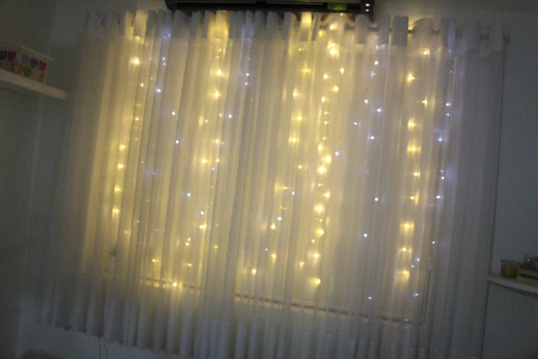 E quem não ama pisca pisca de Natal? Eles são um charme tão especial que dá pra ser usado o ano inteiro. Hoje em dia encontramos em diversas cores e formatos e você pode decorar sua parede com elas. Minha sugestão é fazer como se fosse uma cortina como mostra na primeira foto ou até montar palavras e desenhos com as luzinhas. E ai pra prender, basta usar fita adesiva de fixação forte. Amei essa foto de uma moldura de janela falsa com pisca pisca de bolinhas grandes, achei que ficou super criativo. No meu escritório eu coloquei na cortina, se lembram?