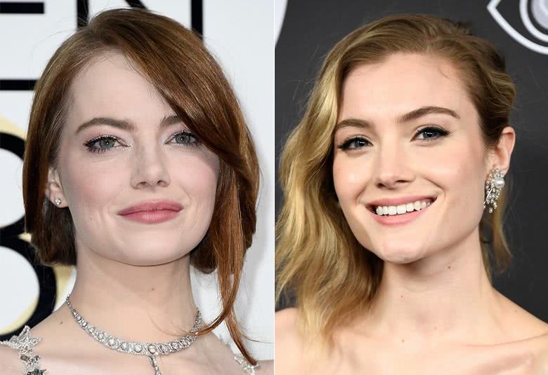 Já fiz um post só falando do look da Emma Stone, mas ela precisava estar nessa lista, né? Amei a make que tem um rosado esfumado no côncavo, uma ótima opção para fugir do tradicional marrom.