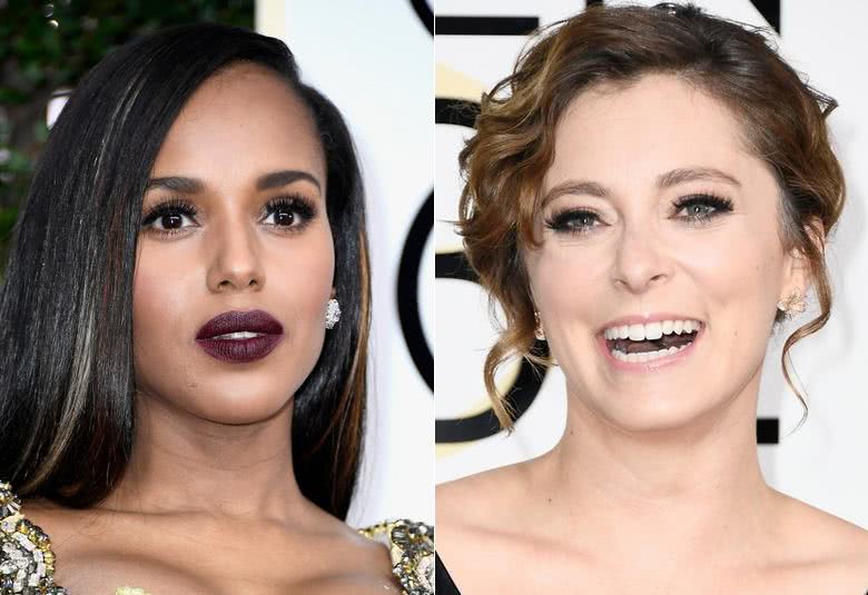 O batom uva da Kerry Washington é maravilhoso, mas acho que acabou borrando um pouco. Uma pena, né? Batom escuro tem que tomar um super cuidado! Gostei que ela combinou com os olhos mais neutros e caprichou nos cílios postiços.