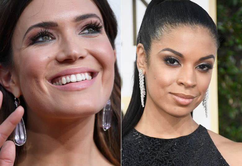 Já Mandy Moore optou por uma maquiagem mais trabalhada com um esfumado escuro na linha inferior dos cílios. Eu fiquei na dúvida se é um preto ou um tom de verde esfumado. Ela combinou com lábios nudes deixando a atenção aos olhos.