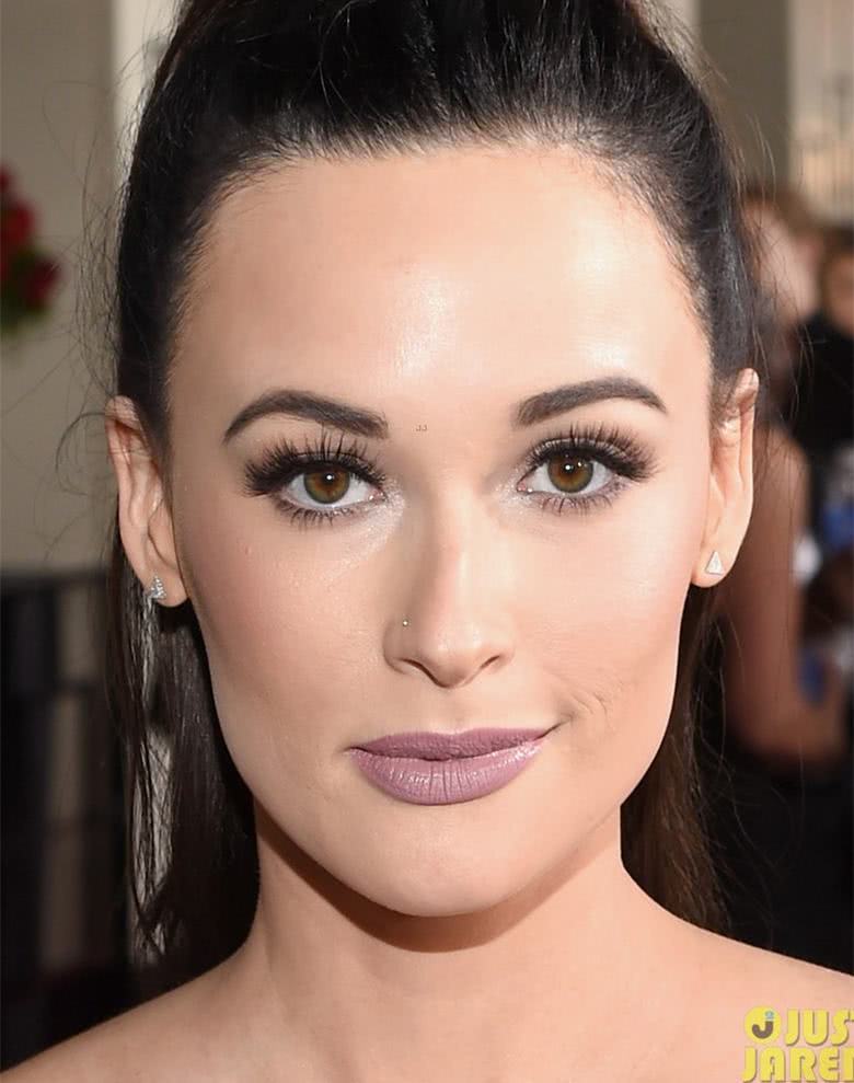 Gostei muito dos olhos da Carrie Underwood com uma sombra metálica com brilhos em tons de dourado meio cobreado. Eu não usaria o lápis preto dentro dos olhos, mas é gosto, né? Amei muito!