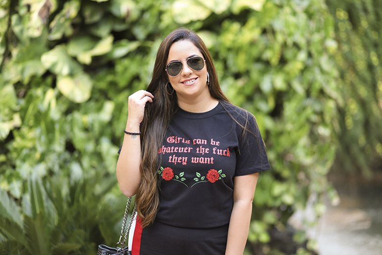 Pra compor o look, usei minha nova camiseta da Farm! Ela é da nova coleção de Signos da marca e ganhei de aniversário de uma amiga a t-shirt do meu signo: Leão! Amei demais a estampa!