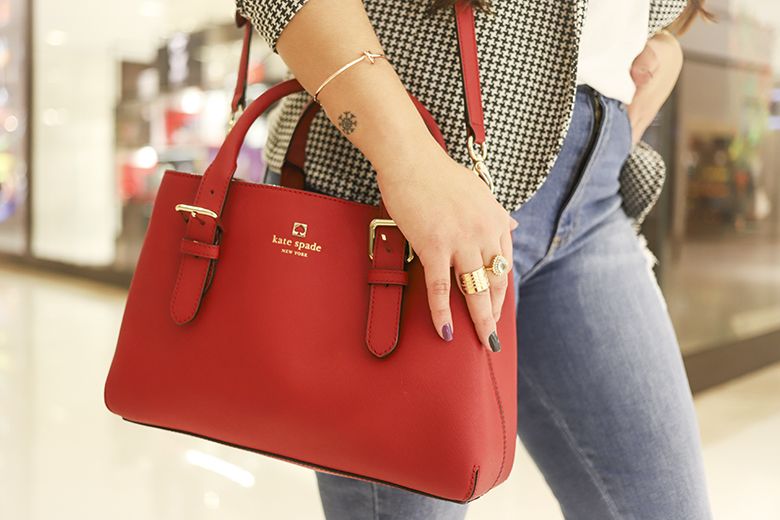Para criar um ponto de cor, escolhi a minha amada bolsa vermelha da Kate Spade!