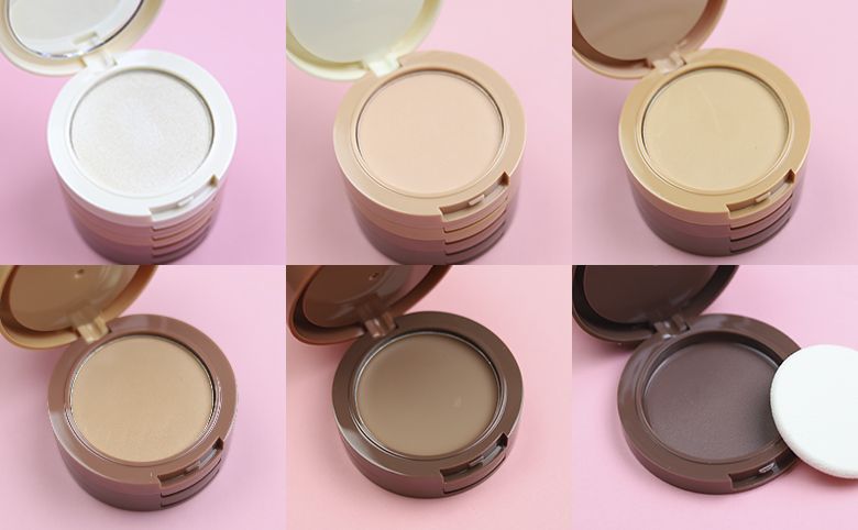 São 6 cores de iluminadores que vão dos tons mais clarinhos, até os mais escuros! Achei bacana pois, além de dar opções de iluminadores para vários tons de pele, também podem ser usados como bronzers, sombras e blushes!