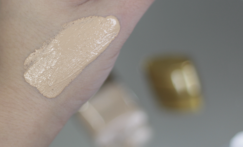 Sua textura é leve e muito fluída. Na foto acima vocês conseguem ver o quanto ele é fininho, por isso espalha super bem na pele, além de não pesar em nada. Assim que aplicado, ele tem toque seco e permanece assim ao longo do dia.