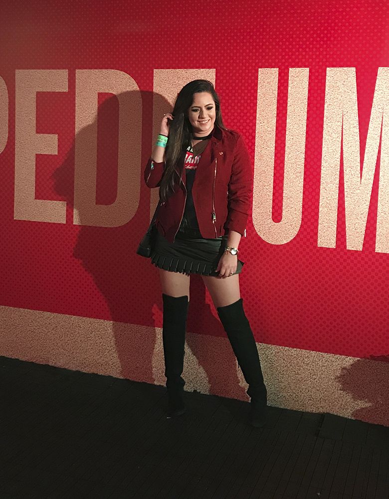 Olha a saia de novo, gente! Hahaha Eu falo que quando eu amo, eu repito mil vezes. Vocês também? Esse look faz um tempinho mas foi no rodeio de Americana. Como estava frio, eu usei uma jaqueta de veludo maravilhosa num tom de vermelho mais queimado. A blusa era o “abadá” do camarote, que é preta com detalhes em vermelho.