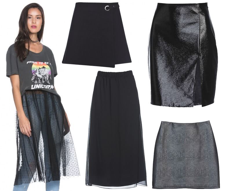 Minha sugestão para a tshirt é usar com alguma saia, tipo esses modelos que separei abaixo: