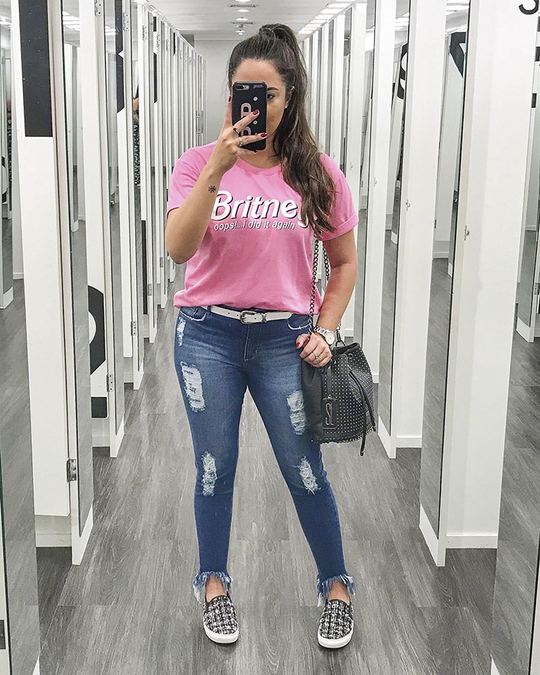 Look 7: Camiseta da Britney e Jeans Rasgado