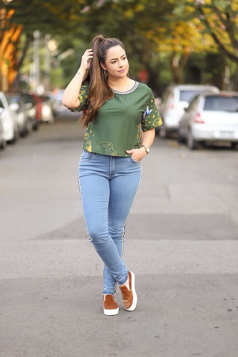 Nunca imaginei que iria gostar de usar uma camiseta cropped, mas como a calça jeans tinha uma cintura altinha, achei que vestiu super bem!