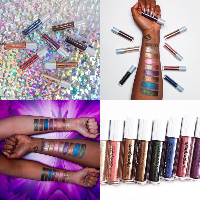 Ainda falando das Moondust, elas ganharam uma versão líquida: Liquid Moondust. São 8 cores com muito brilho! O legal é que dá pra brincar e usar como delineador, né?