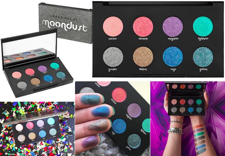 As famosas sombras Moondust, que são aquelas com muito brilho, ganharam uma versão em paleta. São 8 novas cores especiais coloridas entre um prata e um dourado. Já quero!