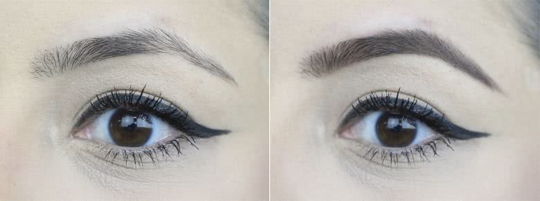 Eu gosto muito mais da cor mais escura, porque eu sinto que a mais clara fica levemente avermelhada em mim. Conseguem ver isso na foto? Eu prefiro tons mais frios, acho que combina mais com o meu tom de pele. No meu caso, como tenho os pêlos bem escuros e gosto da sobrancelha mais marcada, daria para usar o tom mais escuro em tudo.